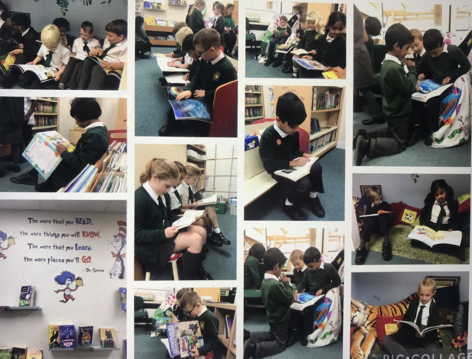 Enjoying reading in our wonderful school library.